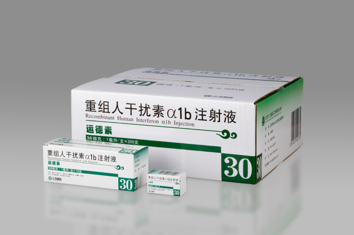 三元基因主要產(chǎn)品重組人干擾素α1b(商品名:運(yùn)德素),是具有自主知識(shí)產(chǎn)權(quán)的基因工程一類(lèi)新藥,實(shí)現(xiàn)了我國(guó)基因工程藥物從無(wú)到有“零”的突破,目前主要用于治療病毒性肝炎、病毒性肺炎、帶狀皰疹、慢性粒細(xì)胞白血病和黑色素瘤等多種病毒性疾病和惡性腫瘤。