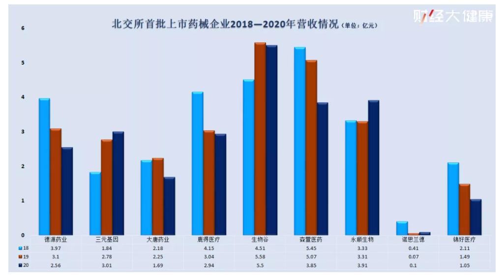 從北交所首批上市的這幾家藥械企業(yè)來(lái)看,年收入最大的不過(guò)5億元左右,最低的還不足1億元,凈利潤(rùn)過(guò)億的只有森萱醫(yī)藥一家。