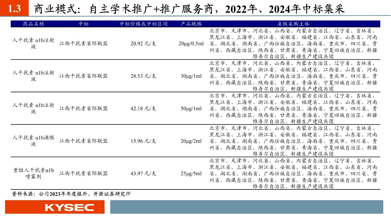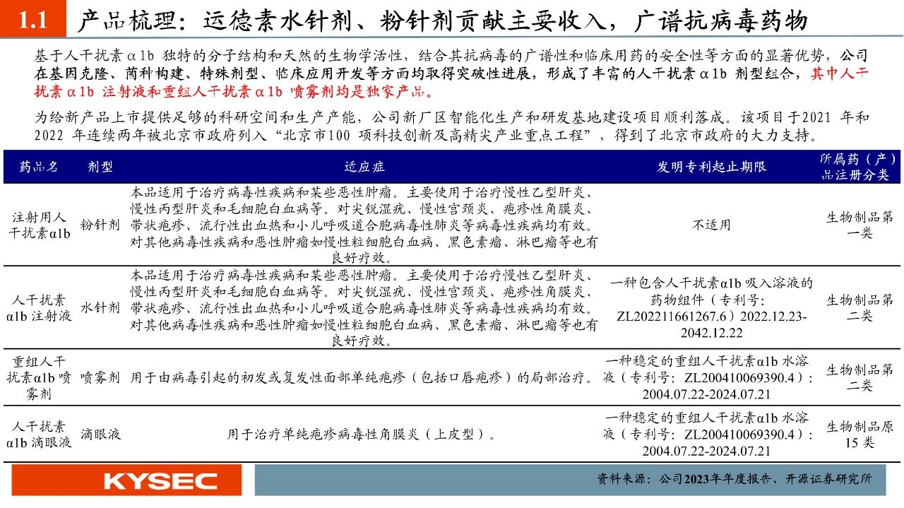 公司:全球獨家生產(chǎn)人干擾素α1b水針劑,市場份額維持領(lǐng)先