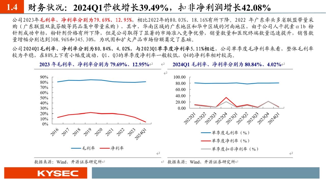 公司產(chǎn)品中重組人干擾素α1b注射液和重組人干擾素α1b噴霧劑是獨家產(chǎn)品。近年來,兒科應(yīng)用已成為公司干擾素主要業(yè)務(wù)增長點。2022年,公司中標《廣東聯(lián)盟雙氯芬酸等藥品集中帶量采購》,采購期2年;2024年公司中標《干擾素省際聯(lián)盟集中帶量采購》,采購期4年。有望帶來一定業(yè)績放量。研發(fā)上,公司以重組基因工程蛋白藥物的研發(fā)和產(chǎn)業(yè)化為重心,先后投資建立了以人干擾素α1b的基因工程關(guān)鍵工藝技術(shù)和應(yīng)用為支撐的四大核心平臺。此外,公司通過募投等研發(fā)項目布局診斷試劑、干擾素工藝改造、干擾素臨床拓展等領(lǐng)域。