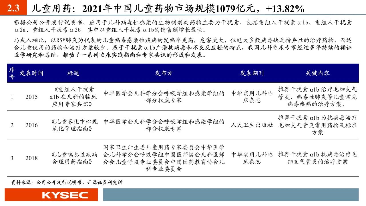 行業(yè):干擾素抗病毒譜廣,抗腫瘤譜廣,兒科抗病毒引領(lǐng)α1b市場增長