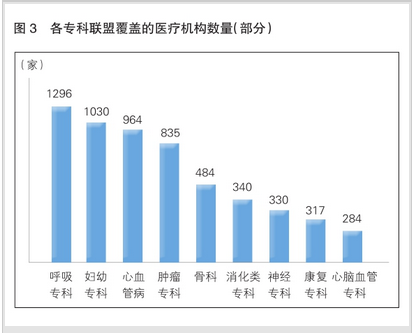 從排名靠前的幾個主要專科聯(lián)盟類型來看,呼吸和婦幼兩大專科所覆蓋的醫(yī)療機構(gòu)最多,平均1個專科聯(lián)盟可覆蓋到近40家醫(yī)療機構(gòu),真正打破了區(qū)域、醫(yī)院類型的限制。