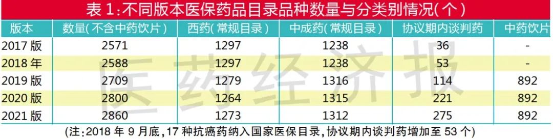 如表1,醫保藥品目錄品種數量持續增長,其中更多為談判品種的增加。