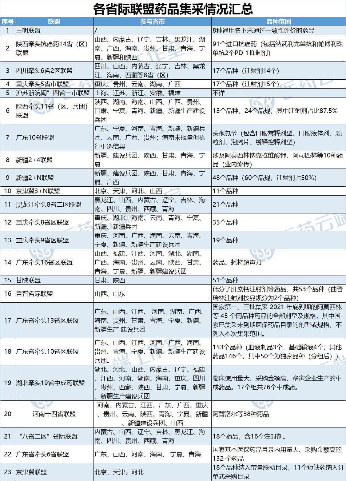 藥品集采省際聯盟達23個,耗材集采聯盟達18個